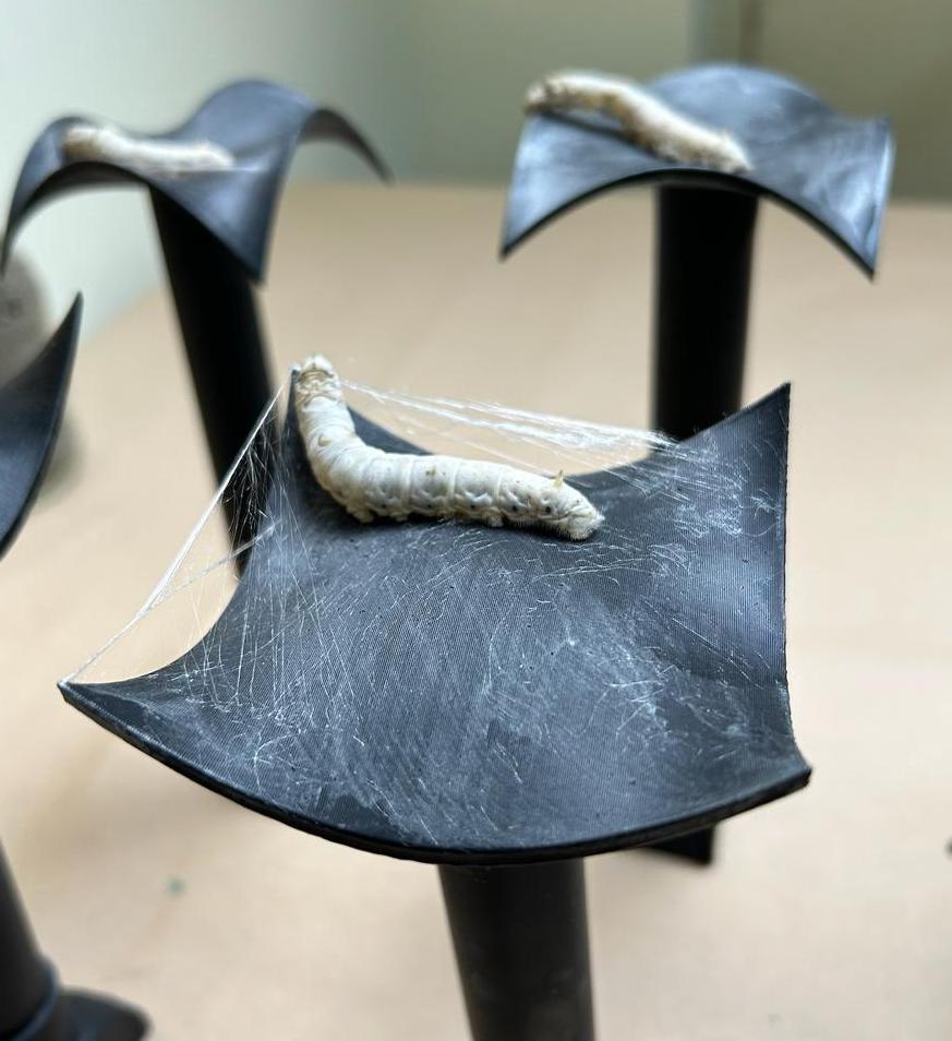 परंपरागत रूप से, शहतूत की पत्तियों पर पलने वाले रेशम के कीड़े अपने चारों ओर कोकून (cocoon) बनाते हैं। रेशम निकालने के लिए इन कोकूनों को उबाल दिया जाता है, जिससे लाखों रेशम कीड़ों की मृत्यु हो जाती है। ‘जीवोदया’ परियोजना ने इस लंबे समय से चली आ रही प्रथा को चुनौती देते हुए करुणा आधारित वैज्ञानिक नवाचार के माध्यम से रेशम उत्पादन की प्रक्रिया को पुनर्परिभाषित किया है। अथक प्रयोगों के बाद, ‘सी-तारा’ ने एक दुर्लभ वैज्ञानिक उपलब्धि हासिल की है, जिसके तहत रेशम के कीड़ों को कोकून बनाए बिना समतल सतह पर रेशमी धागा बुनने के लिए प्रशिक्षित किया गया। इसके परिणामस्वरूप, अब रेशम के कीड़ों को कोकून बनाने की आवश्यकता नहीं