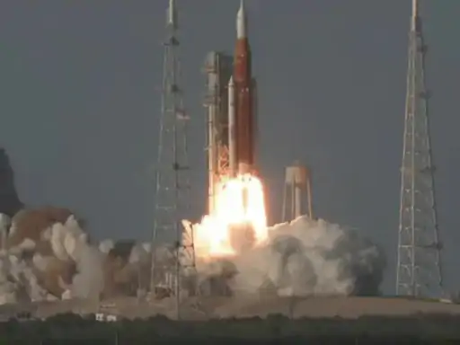 सुबह 4:05 बजे ‘स्पेस लॉन्च सिस्टम’ (SLS) ओरियन स्पेसक्राफ्ट में सवार 4 अंतरिक्ष यात्रियों को लेकर चांद की ओर रवाना हुआ।