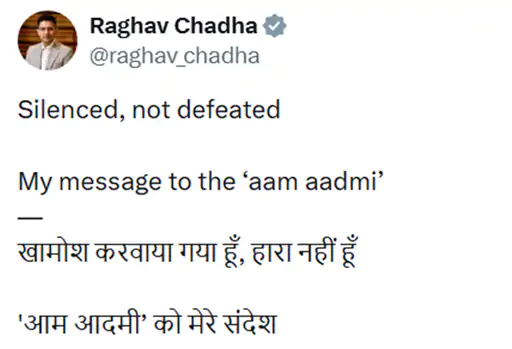 राघव ने कहा कि मैंने पब्लिक के मुद्दे उठाए, इससे AAP को क्या नुकसान हुआ? उन्होंने AAP को चेतावनी दी कि आवाज खामोश कराने वालों के सामने मैं सैलाब बनकर आऊंगा। हालांकि, राघव ने न तो पार्टी के किसी नेता का नाम लिया और न ही पार्टी छोड़ने या आगे की रणनीति को लेकर कुछ कहा। इसके बाद उन्होंने सदन में उठाए गए मुद्दों को लेकर भी वीडियो शेयर किया।
