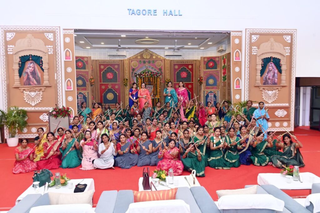इस अवसर पर नेहरू शताब्दी कॉलोनी, वसंत विहार कॉलोनी एवं इंद्रा विहार कॉलोनी में कार्यरत लगभग 80 महिला संविदा कर्मियों ने उत्साहपूर्वक भाग लिया। कार्यक्रम का शुभारंभ माँ दुर्गा की आराधना से हुआ। इसके पश्चात अतिथि बहनों ने भक्ति भाव से माँ दुर्गा के भजनों की प्रस्तुति दी जिससे पूरा सभागार भक्तिमय हो गया। इन बहनों ने गरबा एवं डांडिया की प्रस्तुतियों से कार्यक्रम को जीवंत बना दिया। साथ ही अनेक मनोरंजक खेलों का आयोजन किया गया, जिनमें सभी ने उत्साह से भाग लिया। इस दौरान ‘डांडिया क्वीन’ प्रतियोगिता आयोजित की गई, जिसमें तीन विजेताओं का चयन किया गया।