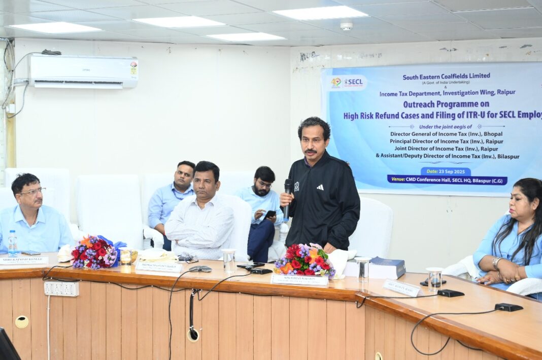 बिलासपुर (BCC NEWS 24): एसईसीएल मुख्यालय, बिलासपुर में दिनांक 23 सितम्बर 2025 को आयकर विभाग (अन्वेषण प्रकोष्ठ), बिलासपुर एवं एसईसीएल के संयुक्त तत्वावधान में एक आउटरीच कार्यक्रम का सफल आयोजन किया गया। यह कार्यक्रम हाइब्रिड मोड में संपन्न हुआ, जिसमें एसईसीएल मुख्यालय के अधिकारी एवं कर्मचारी प्रत्यक्ष रूप से उपस्थित रहे, वहीं सभी क्षेत्रीय कार्यालयों को वीडियो कॉन्फ्रेंसिंग और लाइव लिंक के माध्यम से जोड़ा गया।