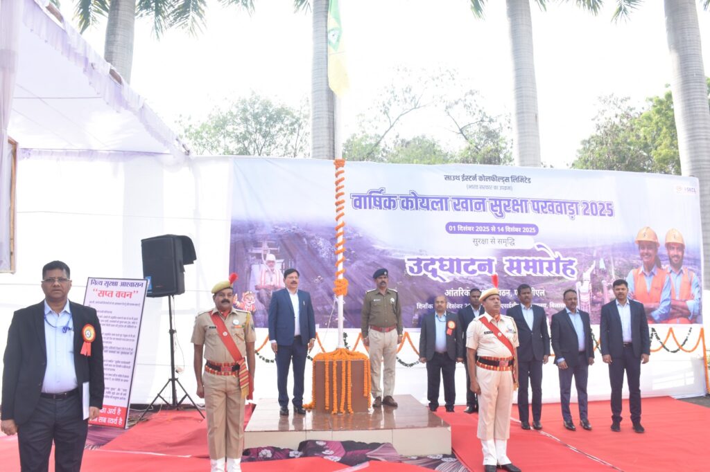 बिलासपुर (BCC NEWS 24): 01 दिसंबर से 14 दिसंबर 2025 तक आयोजित वार्षिक कोयला खान सुरक्षा पखवाड़ा 2025 का उद्घाटन दिनांक 01.12.2025 को एसईसीएल मुख्यालय प्रांगण में अध्यक्ष सह प्रबंध निदेशक श्री हरीश दुहन ने निदेशक तकनीकी (संचालन) श्री एन. फ्रैंकलिन जयकुमार, निदेशक (कार्मिक) श्री बिरंची दास, मुख्य सतर्कता अधिकारी श्री हिमांशु जैन, विभिन्न विभागाध्यक्षों, अधिकारियों-कर्मचारियों, विभिन्न श्रमसंघ प्रतिनिधियों की उपस्थिति में सुरक्षा ध्वज फहराकर किया गया।