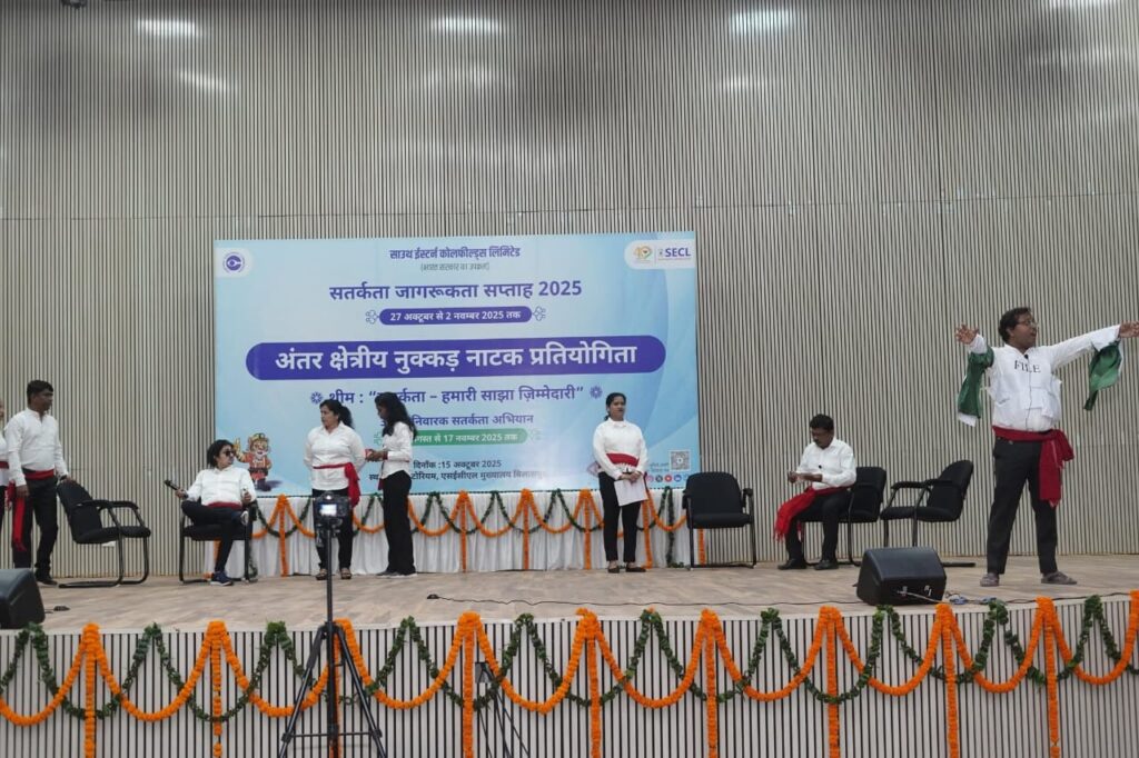 बिलासपुर (BCC NEWS 24): केन्द्रीय सतर्कता आयोग नई दिल्ली के निर्देशानुसार एसईसीएल में चलाए जा रहे 3 माह के निवारक सतर्कता अभियान के तहत मुख्यालय, बिलासपुर में दिनांक 15 अक्टूबर 2025 को अंतर-क्षेत्रीय नुक्कड़ नाटक प्रतियोगिता का आयोजन किया गया। प्रतियोगिता का आयोजन इस वर्ष के सतर्कता अभियान की थीम “सतर्कता: हमारी साझा ज़िम्मेदारी” विषय पर किया गया।
