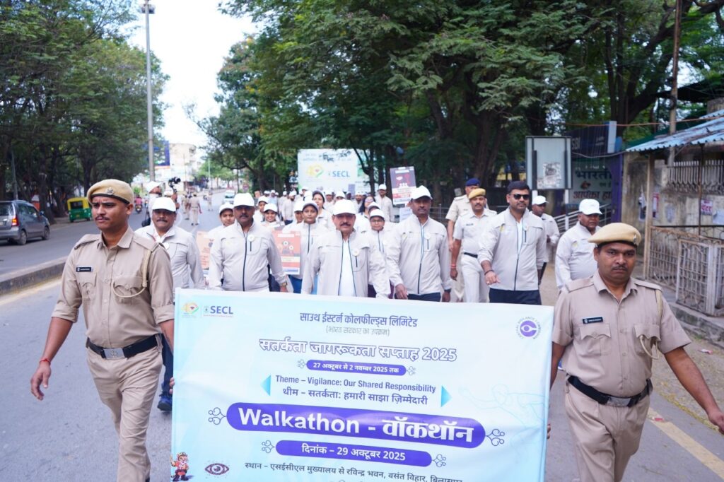 बिलासपुर (BCC NEWS 24): सतर्कता जागरूकता सप्ताह 2025 अंतर्गत आज दिनांक 29 अक्टूबर 2025 को एसईसीएल में वॉकथॉन का आयोजन किया गया जिसमें 100 से अधिक अधिकारी-कर्मचारियों ने रैली में हिस्सा लेकर सतर्कता जागरूकता का संदेश दिया। रैली को सीएमडी श्री हरीश दुहन, निदेशक (तकनीकी/संचालन) श्री एन. फ्रैंकलिन जयकुमार, निदेशक (मानव संसाधन) श्री बिरंची दास, निदेशक (तकनीकी/योजना-परियोजना) श्री रमेश चन्द्र महापात्र एवं मुख्य सतर्कता अधिकारी श्री हिमांशु जैन द्वारा हरी झंडी दिखाकर रवाना किया गया ।