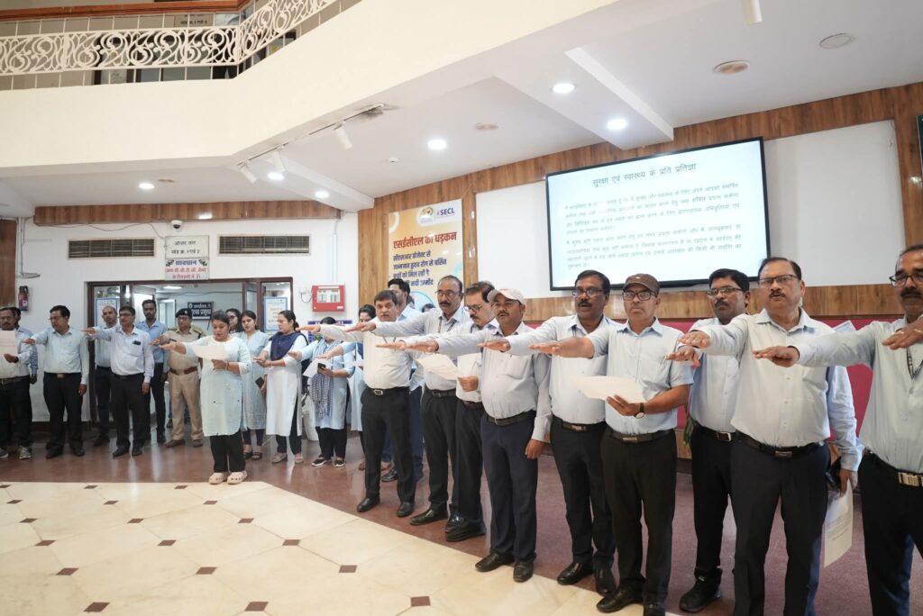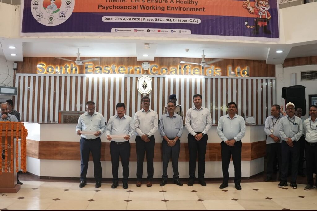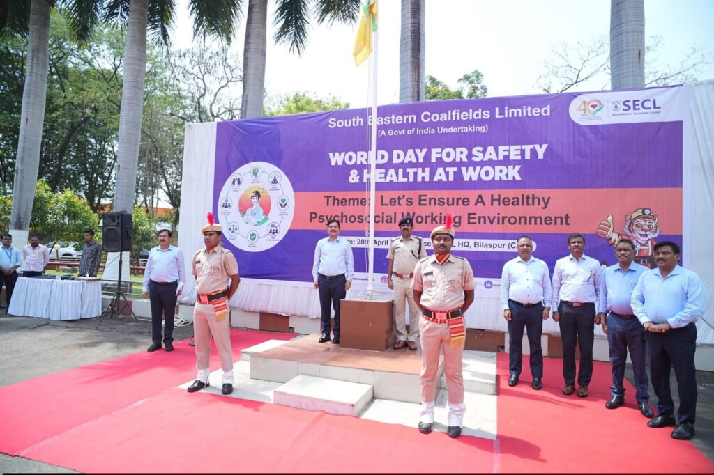 बिलासपुर (BCC NEWS 24): एसईसीएल मुख्यालय प्रांगण में “विश्व कार्यस्थल सुरक्षा एवं स्वास्थ्य दिवस – 2026” के अवसर पर गरिमामय कार्यक्रम का आयोजन किया गया। इस वर्ष विश्व कार्यस्थल सुरक्षा एवं स्वास्थ्य दिवस – 2026” की थीम – “आइए एक स्वस्थ मनो सामाजिक कार्य वातावरण सुनिश्चित करें” है। कार्यक्रम की शुरुआत अध्यक्ष सह प्रबंध निदेशक श्री हरीश दुहन दवारा निदेशक (तकनीकी संचालन) श्री एन फ्रेंकलिन जयकुमार, निदेशक (मानव संसाधन) श्री बिरंची दास, निदेशक (वित्त) श्री डी. सुनील कुमार, मुख्य सतर्कता अधिकारी श्री हिमांशु जैन, निदेशक तकनीकी (योजना-परियोजना) श्री रमेश चन्द्र महापात्र, विभीन्न विभागाध्यक्षों, श्रम संघ प्रतिनिधियों, अधिकारियों-कर्मचारियों की उपस्थिति में सुरक्षा ध्वज फहराकर की गई।