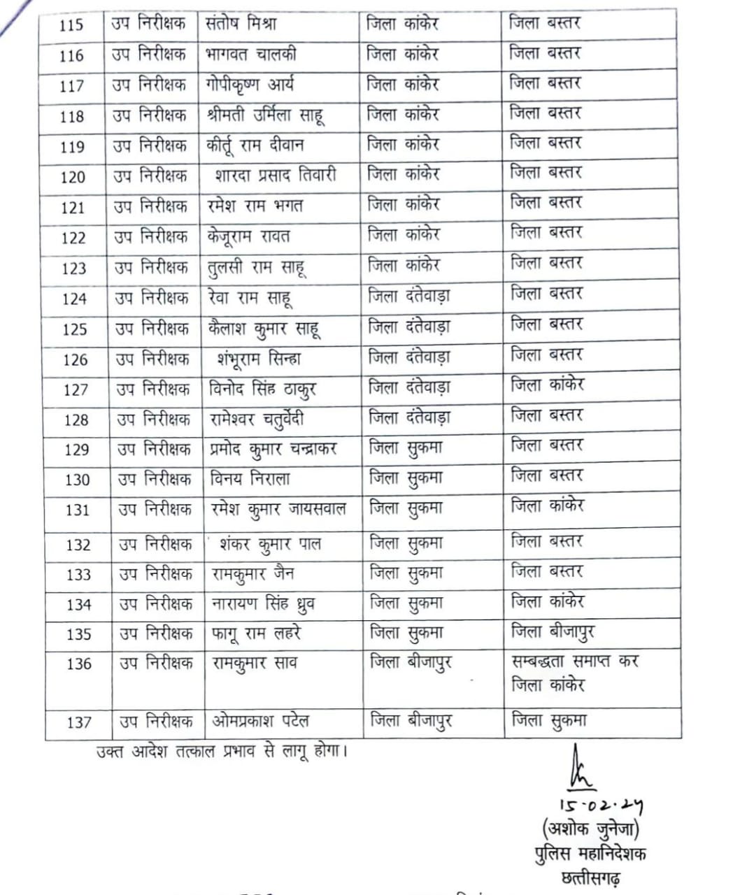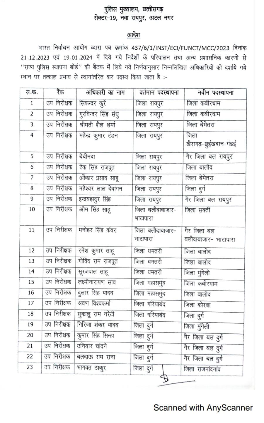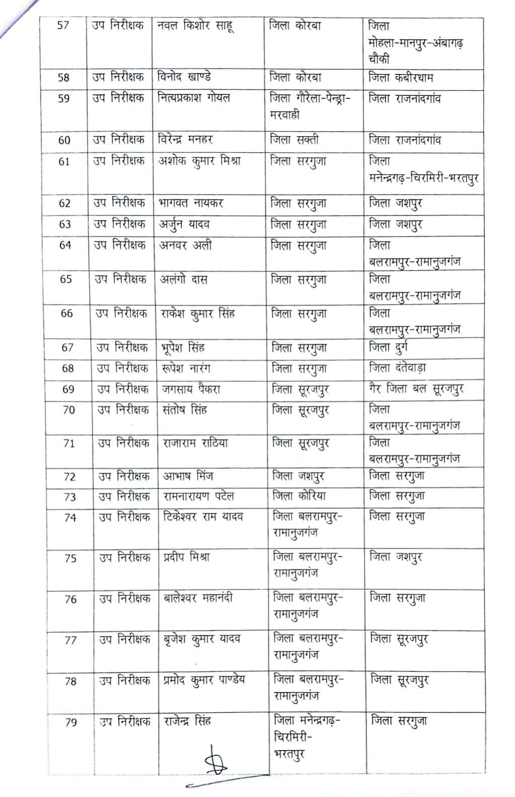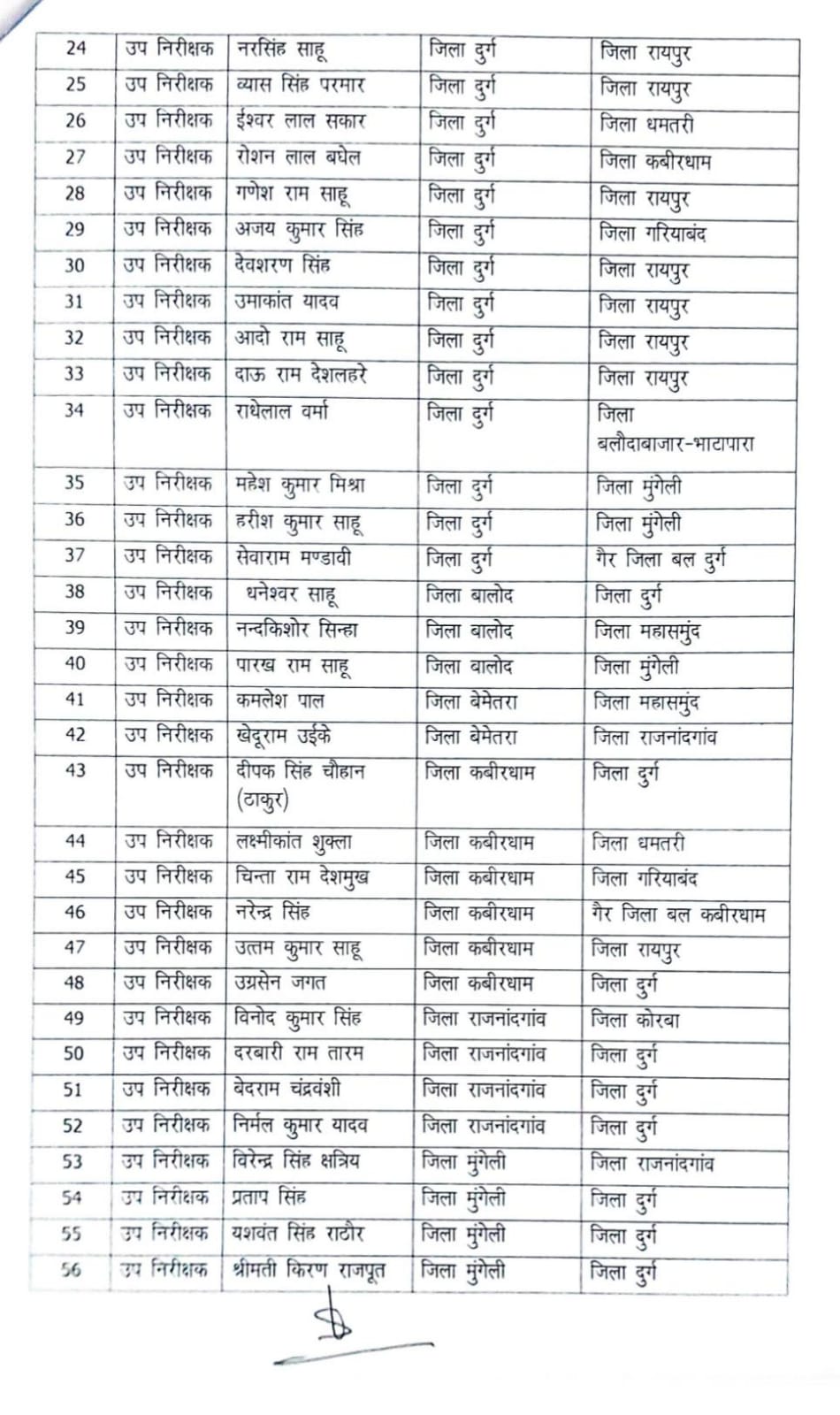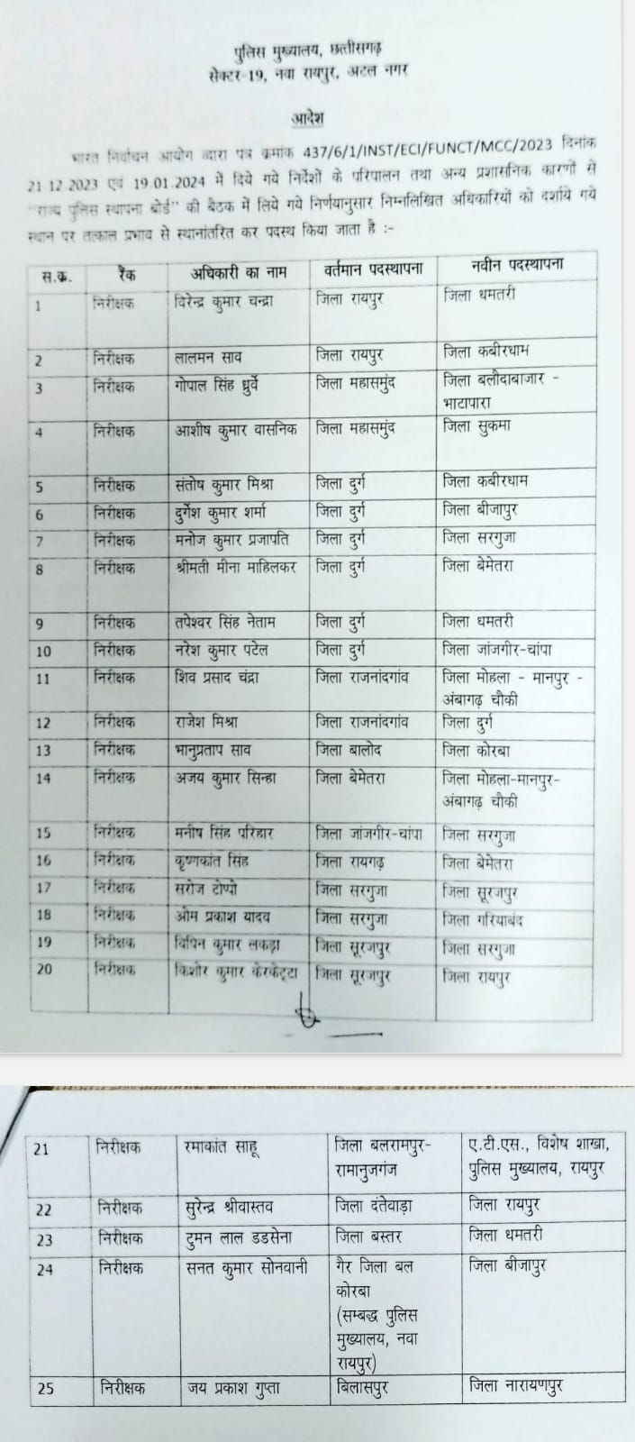 देखिए पुलिस इंस्पेक्टर तबादले की लिस्ट