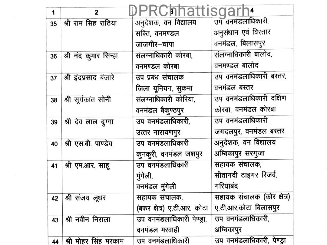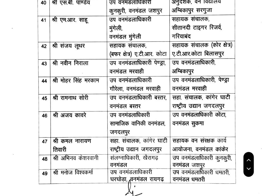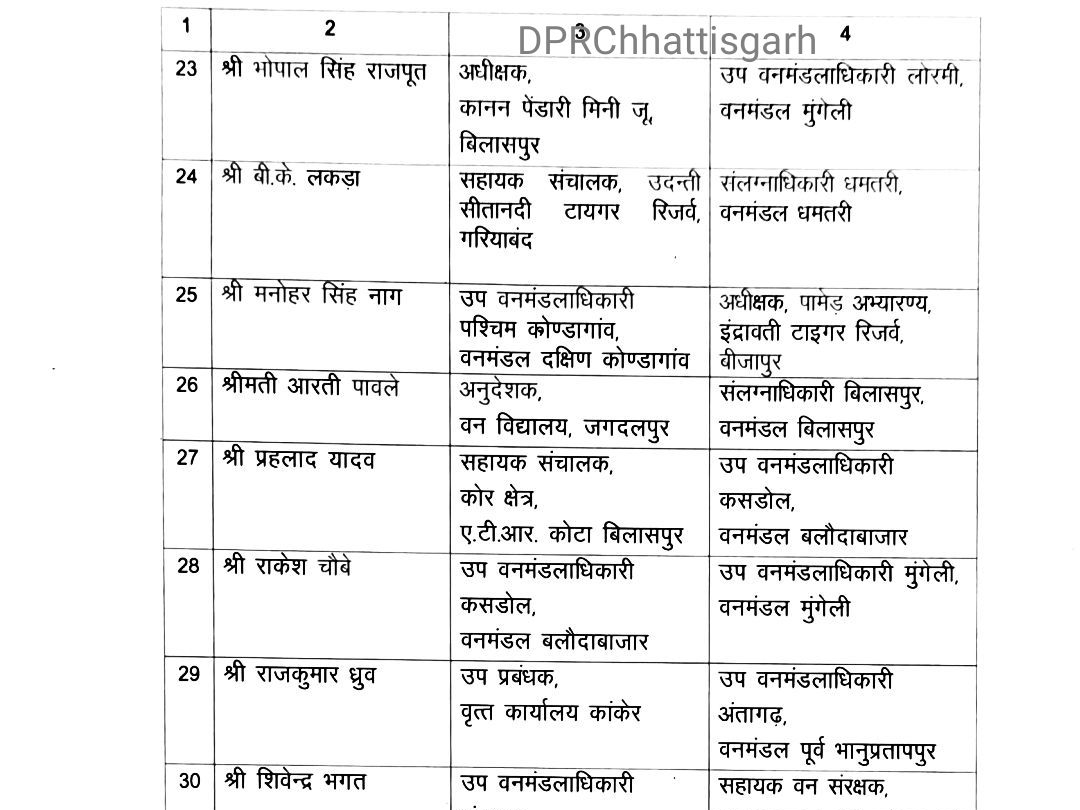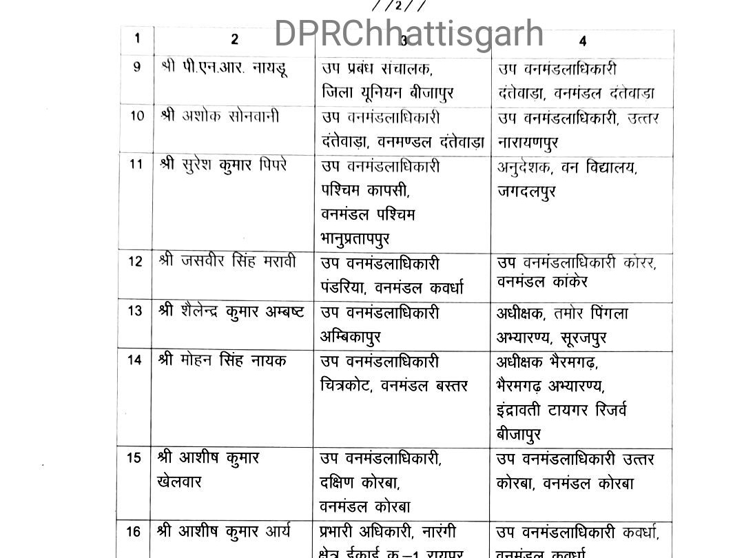 जारी आदेश के मुताबिक, नवीन निराला को उप वनमंडलाधिकारी अंबिकापुर बनाया गया है। नवीन इससे पहले पेंड्र वन मंडल में पदस्थ थे। इसके अलावा अजय कावरे को कोंटा वन मंडल का उप वनमंडलाधिकारी बनाया गया है।