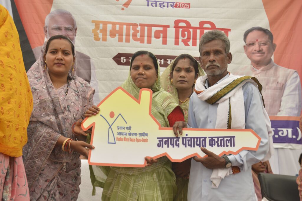 सीईओ जिला पंचायत श्री दिनेश कुमार नाग ने कहा कि समाधान शिविरों का उद्देश्य यही है कि शासन की योजनाएं अंतिम व्यक्ति तक पहुँचें और उसकी समस्याओं का समाधान मौके पर हो। जनपद पंचायत करतला के सीईओ श्री वैभव कुमार कौशिक ने जानकारी दी कि तुमान सेक्टर की 14 ग्राम पंचायतों से आवेदन प्राप्त हुए, जिन्हें संबंधित विभागों द्वारा त्वरित रूप से निराकृत कर आमजन को जानकारी दी गई। अनेक हितग्राही हुए लाभान्वित- स्वास्थ्य विभाग द्वारा औराई, लीमडीह, पकरिया, सुपातराई, लवेद को टी.बी.मुक्त ग्राम घोषित कर स्मृति चिन्ह एवं प्रमाण पत्र प्रदान किए गए। श्रम विभाग द्वारा 2 श्रमिकों को श्रम पंजीयन कार्ड वितरित किए गए। प्रधानमंत्री आवास योजना के 4 हितग्राहियों को प्रतीकात्मक चाबी सौंपी गई। मनरेगा के अंतर्गत 52 हितग्राहियों को जॉब कार्ड प्रदान किए गए। खाद्य विभाग ने 18 हितग्राहियों को राशन कार्ड वितरित किए। कृषि विभाग द्वारा खाद की 1 बोरी, 2 विद्युत पंप, 3 बैटरी स्प्रेयर तथा 4 किसानों को केसीसी चेक वितरित किए गए।आदिम जाति सहकारी बैंक’ द्वारा 6 लाभार्थियों को एटीएम कार्ड वितरित किए गए शिविर के अंत में उपस्थित सभी जनप्रतिनिधियों, विभागीय अधिकारियों और नागरिकों का आभार प्रकट करते हुए कार्यक्रम का समापन किया गया।