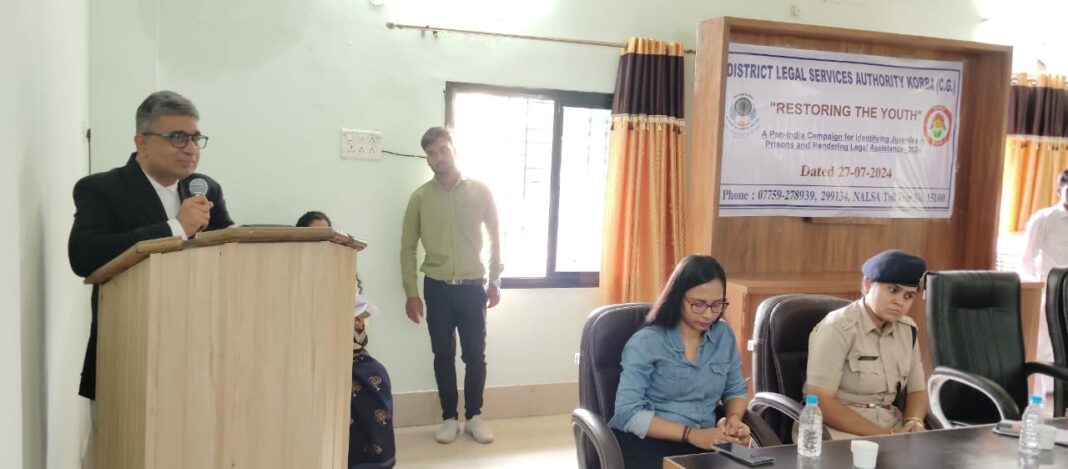 कोरबा (BCC NEWS 24): माननीय राष्ट्रीय विधिक सेवा प्राधिकरण के कुशल दिशा-निर्देशों के अनुपालन में दिनांक 27 जुलाई 2024 को एडीआर भवन जिला न्यायालय परिसर कोरबा में किशोर बंदियोें से संबंधित युवाओं को पुनः स्थापित करना: – जेलों में बंद किशोरों की पहचान करने और विधिक सहायता प्रदान करने के लिये अखिल भारतीय अभियान – 2024 के संबंध में कार्यशाला का आयोजन श्री सत्येन्द्र कुमार साहू, माननीय प्रधान जिला एवं सत्र न्यायाधीश अध्यक्ष, जिला विधिक सेवा प्राधिकरण कोरबा के मार्गदर्शन में आयोजित किया गया।