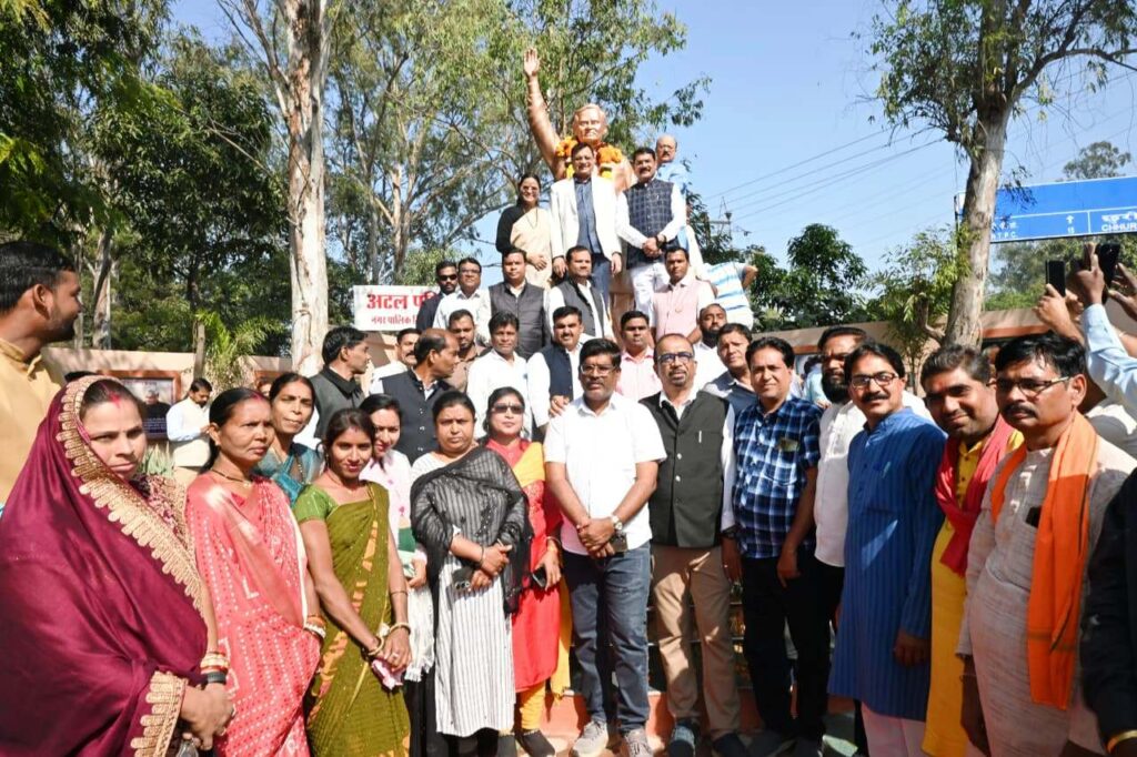 उद्योग मंत्री श्री देवंागन ने अटल परिसर में स्थापित अटल जी की प्रतिमा पर माल्यार्पण एवं कार्यक्रम की शुरूआत कराई, वहीं राजधानी रायपुर में आयोजित सुशासन दिवस समारोह के लाईव प्रसारण में मुख्यमंत्री श्री विष्णुदेव साय द्वारा दिए गए अभिभाषण का श्रवण भी अतिथियों व नागरिकों के द्वारा किया गया, उपस्थितजन राजधानी रायपुर के उक्त सम्पूर्ण आयोजन में आनलाईन रूप से शामिल भी हुए। इस मौके पर कार्यक्रम को संबोधित करते हुए उद्योग मंत्री श्री देवंागन ने आगे कहा कि आज अत्यंत शुभ दिन है, अटल जी की जन्मजयंती के दिन आज प्रदेश के 115 शहरों में अटल परिसर का लोकार्पण हुआ है, उन्होने कोरबा में निर्मित अटल परिसर की सराहना करते हुए कहा कि निश्चित रूप से यह सर्वश्रेष्ठ अटल परिसर है। उद्योग मंत्री श्री देवांगन ने आगे कहा कि डाॅ.रमन ंिसह ने अपने मुख्यमंत्रित्व कार्यकाल मंे प्रदेश के गांव-गांव में अटल चैक का निर्माण कराया था, और अब मुख्यमंत्री श्री विष्णुदेव साय व उप मुख्यमंत्री एवं नगरीय प्रशासन मंत्री श्री अरूण साव प्रदेश के सभी शहरों में अटल परिसर का निर्माण कराया है।