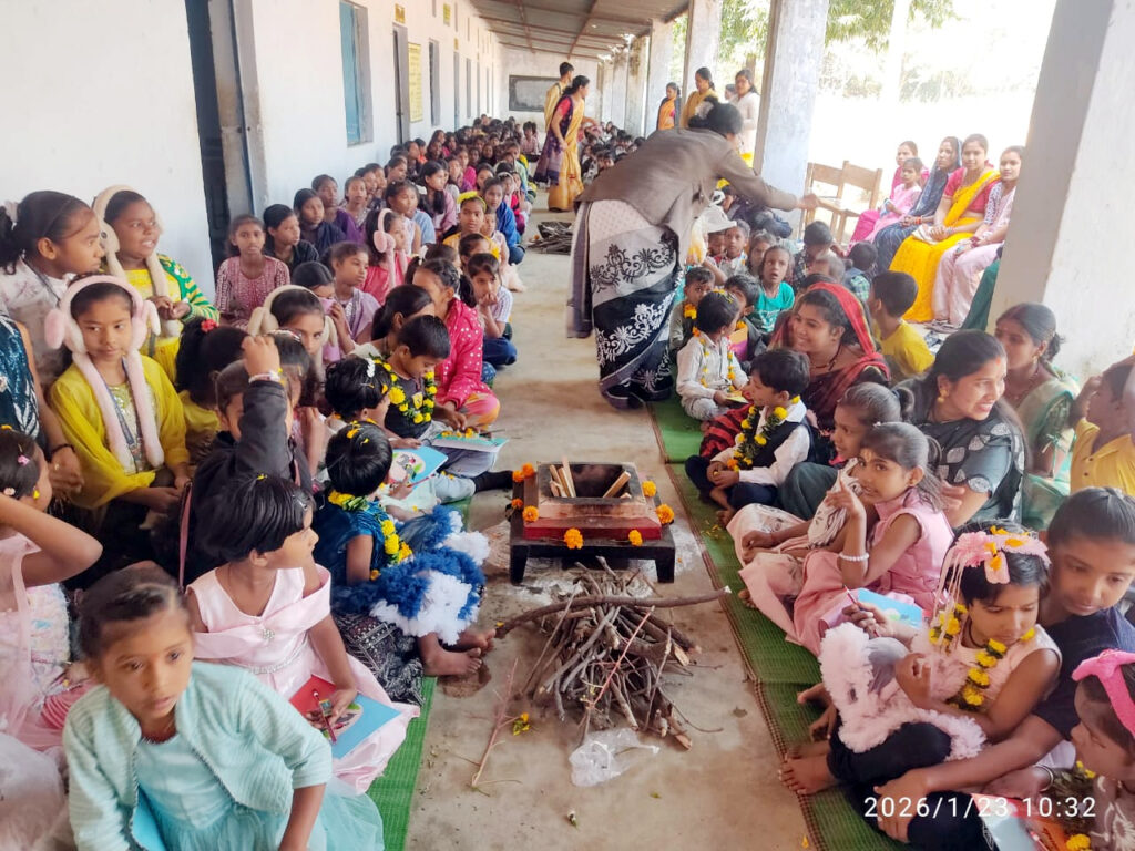- सरस्वती पूजन के साथ 40 नन्हे बच्चों का मंत्रोच्चार के बीच हुआ विद्यारंभ संस्कार
