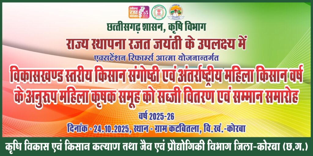 कोरबा (BCC NEWS 24): राज्य स्थापना रजत जयंती के उपलक्ष्य में विकासखंड कोरबा ग्राम कटबिटला में किसान संगोष्ठी का आयोजन किया गया। कार्यक्रम में कृषि विभाग के साथ संवर्गीय विभाग उद्यान, पशु चिकित्सा, मछली विभाग के अधिकारियों कर्मचारियों के द्वारा विभागीय योजनाओं के साथ तकनीकी जानकारी किसानों को प्रदान किया गया। साथ ही अंतरराष्ट्रीय महिला किसान वर्ष 2026 अनुरूप महिला किसानों को सब्जी बीज बांट कर उन्हें पुष्प गुच्छ भेंटकर सम्मानित किया गया।