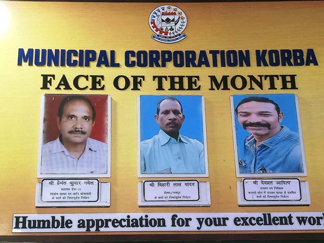 KORBA : निगम के ’’फेस आफ द मंथ’’ चुने गए हेमन्त, देवव्रत व बिहारी लाल