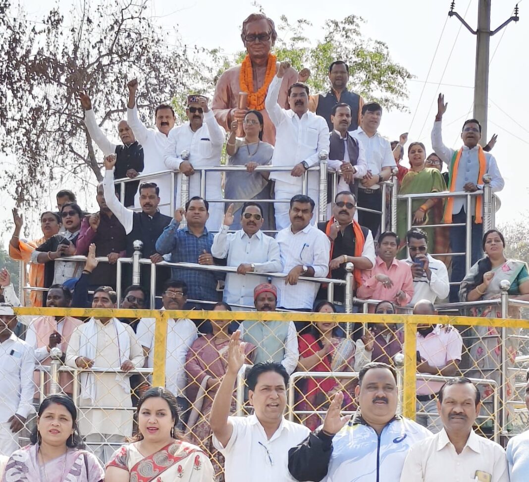 कोरबा (BCC NEWS 24): 11 फरवरी को भारतीय जनता पार्टी द्वारा परम श्रद्धेय पंडित दीनदयाल उपाध्याय जी की पुण्यतिथि प्रत्येक वर्ष समर्पण दिवस के रूप में मनाई जाती है। इसी क्रम में इस वर्ष भी 11 फरवरी को जिला भाजपा कार्यालय, कोरबा में पंडित दीनदयाल उपाध्याय जी को पूर्णतः सादगी एवं श्रद्धा के साथ श्रद्धासुमन अर्पित किए गए। इसके पश्चात घंटाघर स्थित पंडित दीनदयाल उपाध्याय जी की प्रतिमा पर माल्यार्पण किया गया। लोकप्रिय व ऊर्जावान जिलाध्यक्ष श्री गोपाल मोदी, सह संभाग प्रभारी रायपुर डॉ. राजीव सिंह, महापौर श्रीमती संजू देवी राजपूत, अध्यक्ष छत्तीसगढ़ राज्य हाथकरघा विपणन एवं विकास संघ श्री भोजराम देवांगन के गरिमामय उपस्थिति में आयोजित इस कार्यक्रम में भाजपा के ज्येष्ठ-श्रेष्ठ कार्यकर्ता व पदाधिकारी बड़ी संख्या में उपस्थित रहे तथा सभी ने पंडित दीनदयाल उपाध्याय जी के बताए मार्ग पर चलने का संकल्प लिया।
