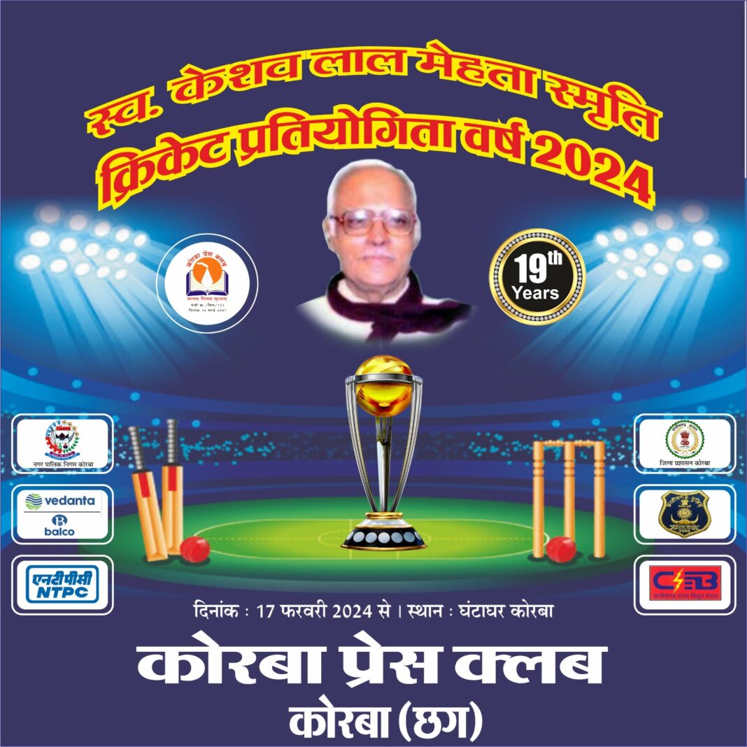उल्लेखनीय है कि अंचल के वरिष्ठ पत्रकार रहे स्वर्गीय केशव लाल मेहता जी की स्मृति में कोरबा प्रेस क्लब द्वारा विगत 18 वर्षो से उक्त प्रतिष्ठित क्रिकेट प्रतियोगिता का आयोजन घंटाघर मैदान में हो रहा है। कोरबा प्रेस क्लब की ओर से 19वें वर्ष के आयोजन के लिए तैयारियां शुरू कर दी गई है।