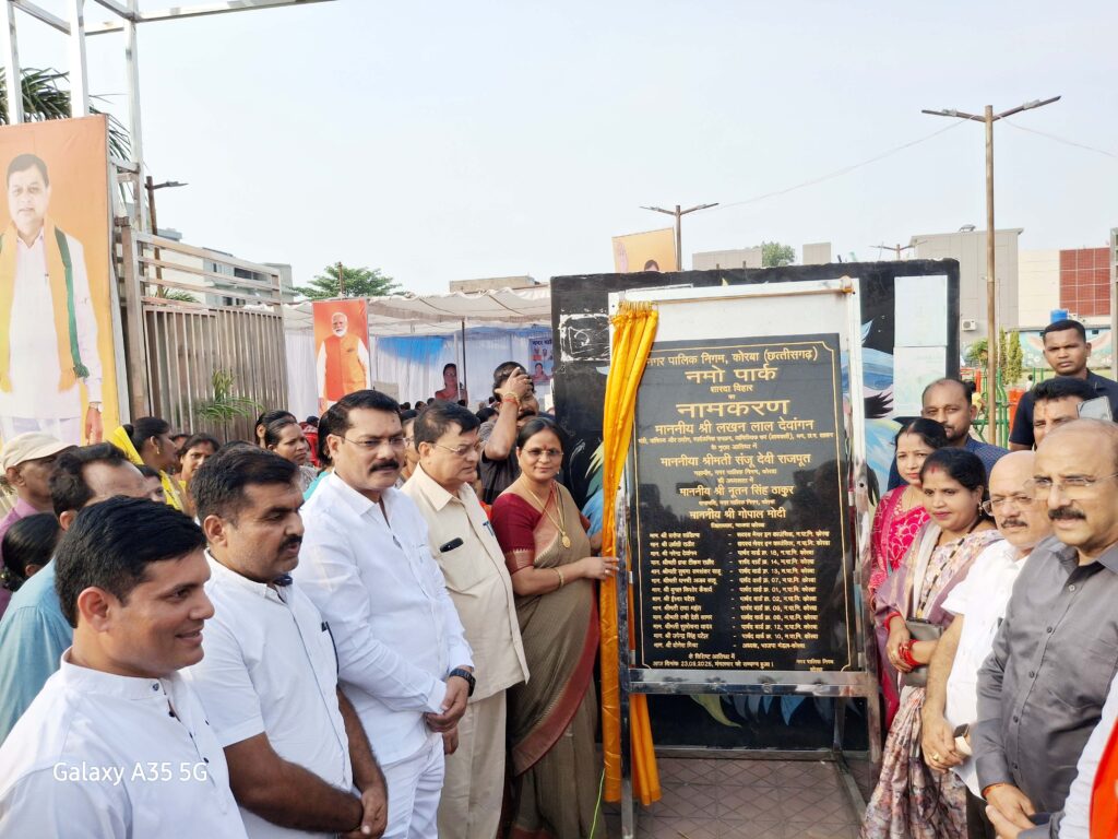 - नगर पालिक निगम कोरबा के शारदा विहार एवं कोहड़िया उद्यान के ’’ नमो पार्क ’’ नामकरण पट्टिका का अनावरण किया उद्योग मंत्री श्री देवांगन ने