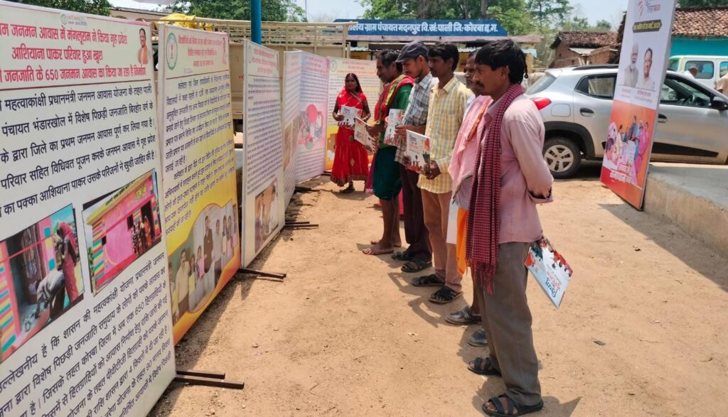 जनसंपर्क विभाग के श्री मनीष यादव द्वारा पाली ब्लाक के मदनपुर में प्रदर्शनी लगाकर प्रचार सामग्री- हम सबके राम, सुशासन के नवीन आयाम, आदिवासियों का उत्थान, विष्णु का सुशासन, जनादेश परब रिपोर्ट कार्ड, खुशियों का आशियाना, छत्तीसगढ़ जनमन आदि का वितरण किया गया। प्रदर्शनी में पहुंची श्रीमती हेमबाई, दुखनी धु्रव, बैशाखा अहिर, अनार कुंवर, प्रतिमा अहिर, सुमन खैरवार, फुलचंद, राजाराम, बिरजू खैरवार, नारायण प्रसाद आदि ने प्रचार सामग्री प्राप्त करने के पश्चात कहा कि इससे शासन की योजनाओं की जानकारी मिलेगी और वे भी योजनाओं के संबंध में अन्य किसी को बता पायेंगे। महिलाओं ने बताया कि उन्हें महतारी वंदन योजना की राशि प्राप्त होती है। यह राशि हर माह वे खाते से निकाल लेती हैं। राशि का उपयोग घर के जरूरी खर्चों के लिये किया जाता है।