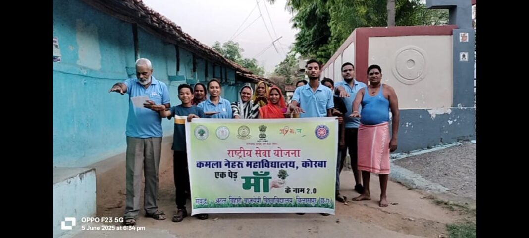 कोरबा (BCC NEWS 24): महाविद्यालय की राष्ट्रीय सेवा योजना इकाई द्वारा विश्व पर्यावरण दिवस के अवसर पर एक पेड़ मां के नाम 2.0 अभियान का प्रारंभ गोद ग्राम भादा में किया गया। महाविद्यालय के प्राचार्य डॉ प्रशांत बोपापुरकर के मार्गदर्शन तथा रासेयो जिला संगठक वाय के तिवारी के नेतृत्व में रासेयो स्वयंसेवकों ने ग्राम प्रतिनिधियों के साथ हसदेव अमृत वाटिका में अमरूद का पौधा रोपित कर एक पेड़ मां के नाम अभियान की शुरुआत की तथा वृहद वृक्षारोपण को बढ़ावा देते हुए पर्यावरण संरक्षण व संवर्धन के प्रति लोगों को जागरूक करने का कार्य किया।