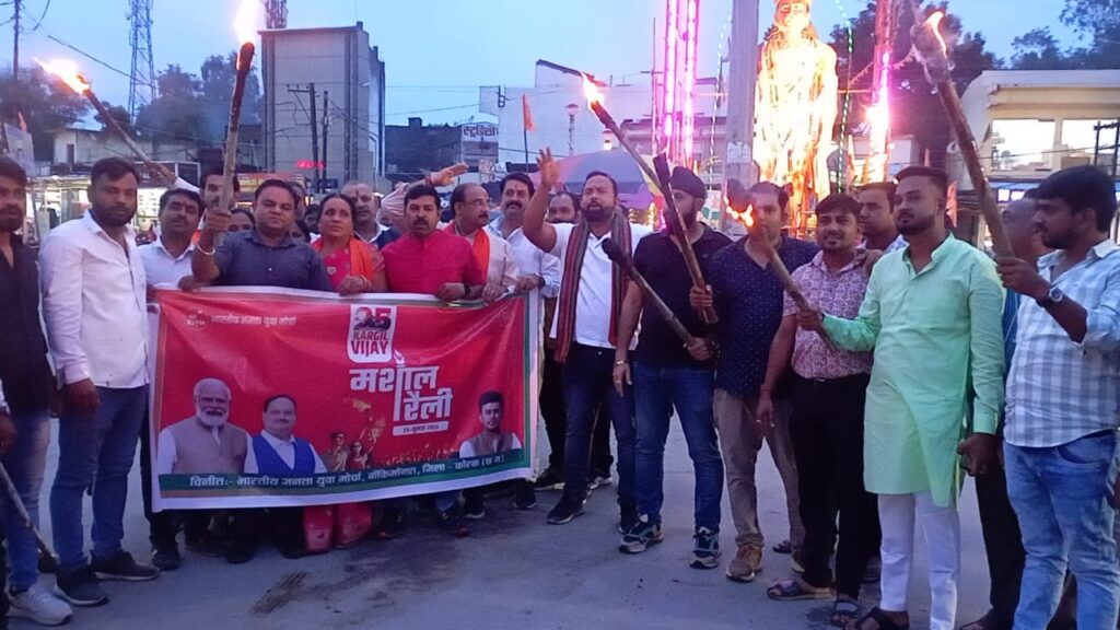 कोरबा (BCC NEWS 24): भारतीय जनता युवा मोर्चा राष्ट्रीय एवं प्रदेश नेतृत्व के आह्वान पर जिला युवा मोर्चा एवं मंडल युवा मोर्चा के संयुक्त तत्वाधान में आज बंकी मोंगरा मंडल में मंडल अध्यक्ष उदय शर्मा के नेतृत्व में कारगिल विजय मसाल रैली का आयोजन किया गया जिसमें कार्यकर्ताओं ने बढ़ चढ़कर हिस्सा लिया और साथ ही देश के अमर शहीद जवानों ने जिस जज्बे के साथ इस युद्ध में भारत को विजय दिलाने का काम किया और कारगिल युद्ध जीतकर हमारे देश को सशक्त बनाने में योगदान दिया उसको याद करते हुए भारतीय जनता युवा मोर्चा जिला एवम मंडल के द्वारा कार्यक्रम के आवाहन किया गया था जिसके परिपालन करते हुए आज जिला भारतीय जनता युवा मोर्चा कोरबा के द्वारा किया गया। यह कार्यक्रम बांकी मोंगरा में आयोजन किया गया इस कार्यक्रम में युवा मोर्चा के पदाधिकारी एवं कार्यकर्ताओं के द्वारा सोमवारी बाजार शिव मंदिर से अमर ज्योति दीप प्रज्वलित कर एवं मसाल के साथ मेन रोड से होते हुए बजरंग चौक तक लाया गया तत्पश्चात बांकी मोंगरा के अमर शहीदों के याद में बजरंग चौक में अमर ज्योति दीप का स्थापना किया गया जो आज दिन गुरुवार से लेकर निरंतर 24 घंटे तक कल शुक्रवार तक प्रज्वलित रहेगा और इसके संपूर्ण देखरेख की जिम्मेदारी भी युवा मोर्चा के कार्यकर्ता द्वारा किया जा रहा है यहां आपको बता दे की युवा मोर्चा द्वारा बांकी मोंगरा के स्वतंत्रता संग्राम सेनानी के परिवारजनों को सम्मानित करते हुए उनके बलिदान को याद किया गया और साथ ही देश के लिए अपनी जान न्यौछावर करने वाले जवानों को श्रद्धांजलि अर्पित करते हुए उनके बलिदानों को पुनः देश के समक्ष रखते हुए आज के युवा पीढ़ी के सामने उनके इस शहादत को रखा गया इस।