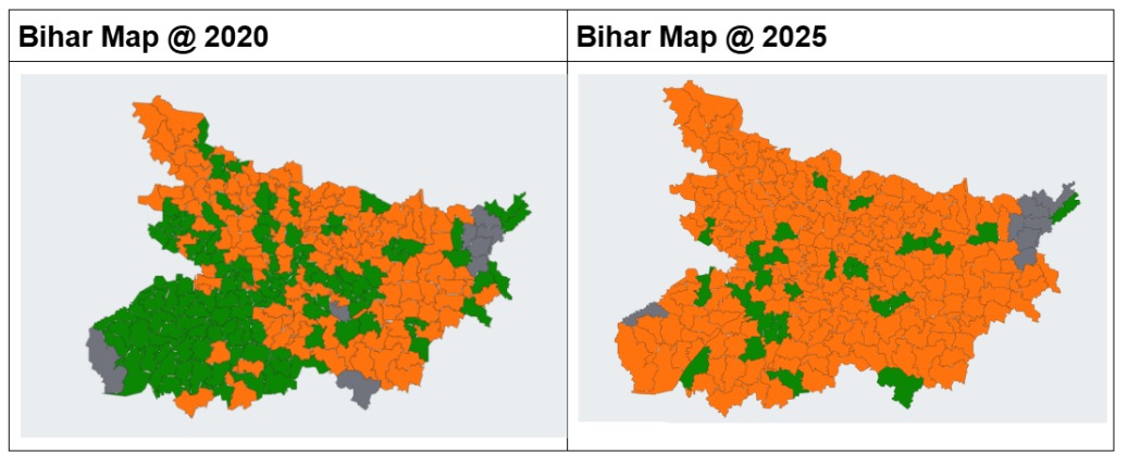 बिहार में सरकार बनाने के लिए 122 सीटों की जरूरत होती है। NDA में भाजपा और JDU ने 101-101 सीटों पर चुनाव लड़ा था। अन्य सहयोगी पार्टियों LJP को 29 सीटें, HAM और RLM को 6-6 सीटें दी गई थीं। भाजपा ने 91 सीटों पर जीत हासिल की है। JDU 83, LJP 19, HAM और RLM की मिलाकर 9 सीटों हैं।