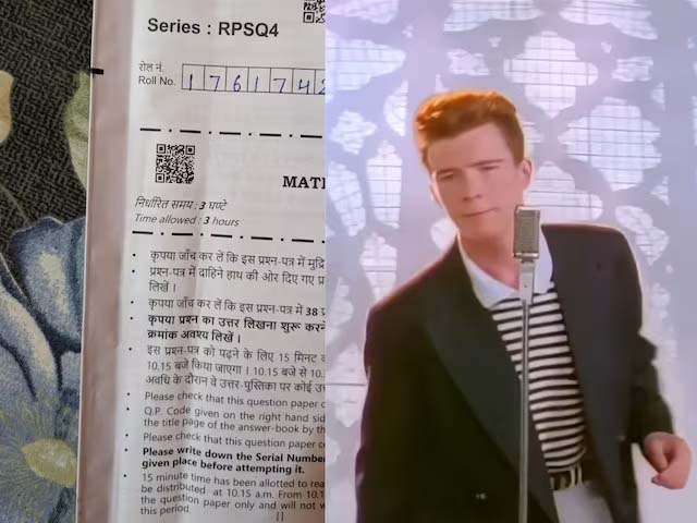 नई दिल्ली: सीबीएसई की 12वीं की परीक्षा में मैथ के पेपर पर छपे सिक्योरिटी क्यूआर कोड को स्कैन करने पर यू-ट्यूब की लिंक ओपन हो रही है। यह लिंक 39 साल पुराने इंग्लिश सॉन्ग ‘रिकरोल’ की है।