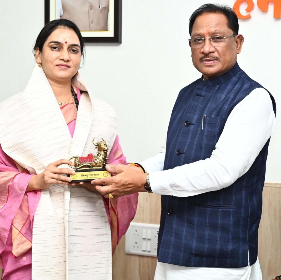 रायपुर: मुख्यमंत्री श्री विष्णु देव साय से आज मुख्यमंत्री निवास कार्यालय में पर्यावरण संरक्षण के क्षेत्र में उल्लेखनीय योगदान देने वाली “वॉटर वुमन” के नाम से विख्यात शिप्रा पाठक ने सौजन्य भेंट की। इस अवसर पर मुख्यमंत्री श्री साय ने शिप्रा पाठक के पर्यावरण संरक्षण और विशेष रूप से सिंदूर पौधरोपण को जन-जन तक पहुंचाने में उनके महत्वपूर्ण योगदान की सराहना की। उन्होंने शिप्रा पाठक को शॉल और स्मृति चिन्ह भेंट कर सम्मानित किया। उल्लेखनीय है कि शिप्रा पाठक ने पर्यावरण संरक्षण के प्रति अपनी प्रतिबद्धता और समाज में जागरूकता फैलाने के लिए किए गए कार्यों के लिए व्यापक स्तर पर पहचान प्राप्त की है। उनके नेतृत्व में पौधरोपण अभियान ने न केवल पर्यावरण संरक्षण को बढ़ावा दिया है, बल्कि आम लोगों को पेड़ लगाने और पर्यावरण के प्रति जिम्मेदारी निभाने के लिए प्रेरित भी किया है।इस अवसर पर बाबासाहेब भीमराव अंबेडकर केंद्रीय विश्वविद्यालय, लखनऊ के प्रोफेसर हरिशंकर सिंह भी उपस्थित थे।
