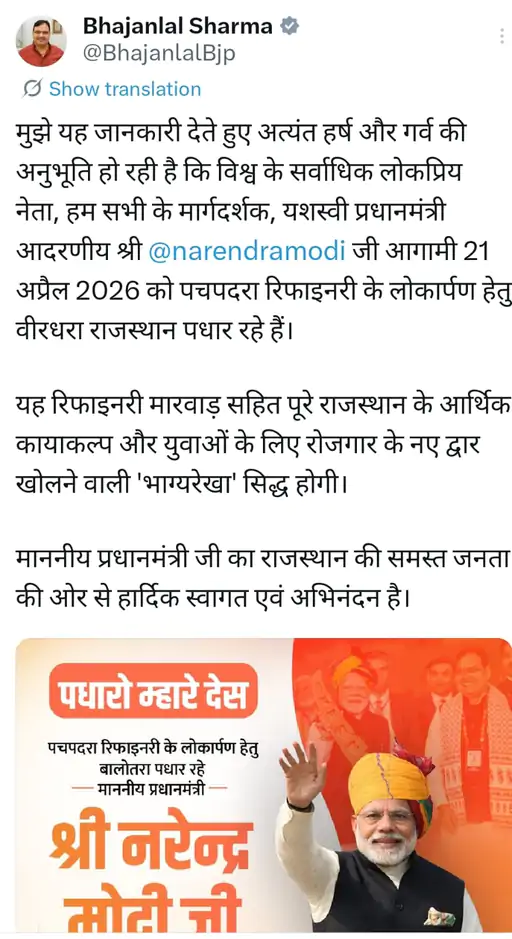 मोदी 2 महीने में दूसरी बार राजस्थान आ रहे हैं। पीएमओ से मंजूरी मिलने के बाद सीएम भजनलाल शर्मा ने अपने एक्स अकाउंट पर पोस्ट करके इस बात की जानकारी दी है।